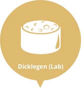 Das Milchgemisch wird mithilfe von Starterkulturen (Milchsäurebakterien) vorgereift und anschließend mit Lab zum Gerinnen gebracht.
