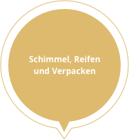 Im letzten Abschnitt der Käseherstellung darf der Käse ruhen und reifen. Beim Weichkäse liegt die Reifezeit bei ca. 1 ‒ 2 Wochen.